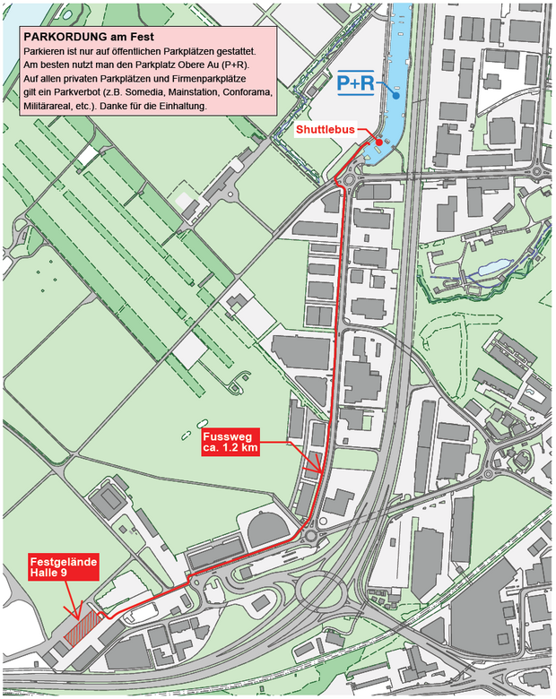 Am besten benützen Sie den Parkplatz Obere Au (P+R) und fahren von